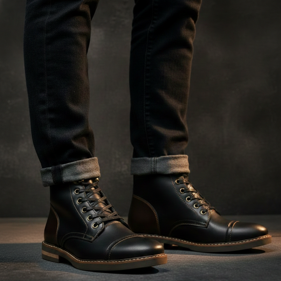 Botas para Hombre Negro x Coñac de Caña Media – Diseño Robusto con Suela Antideslizant